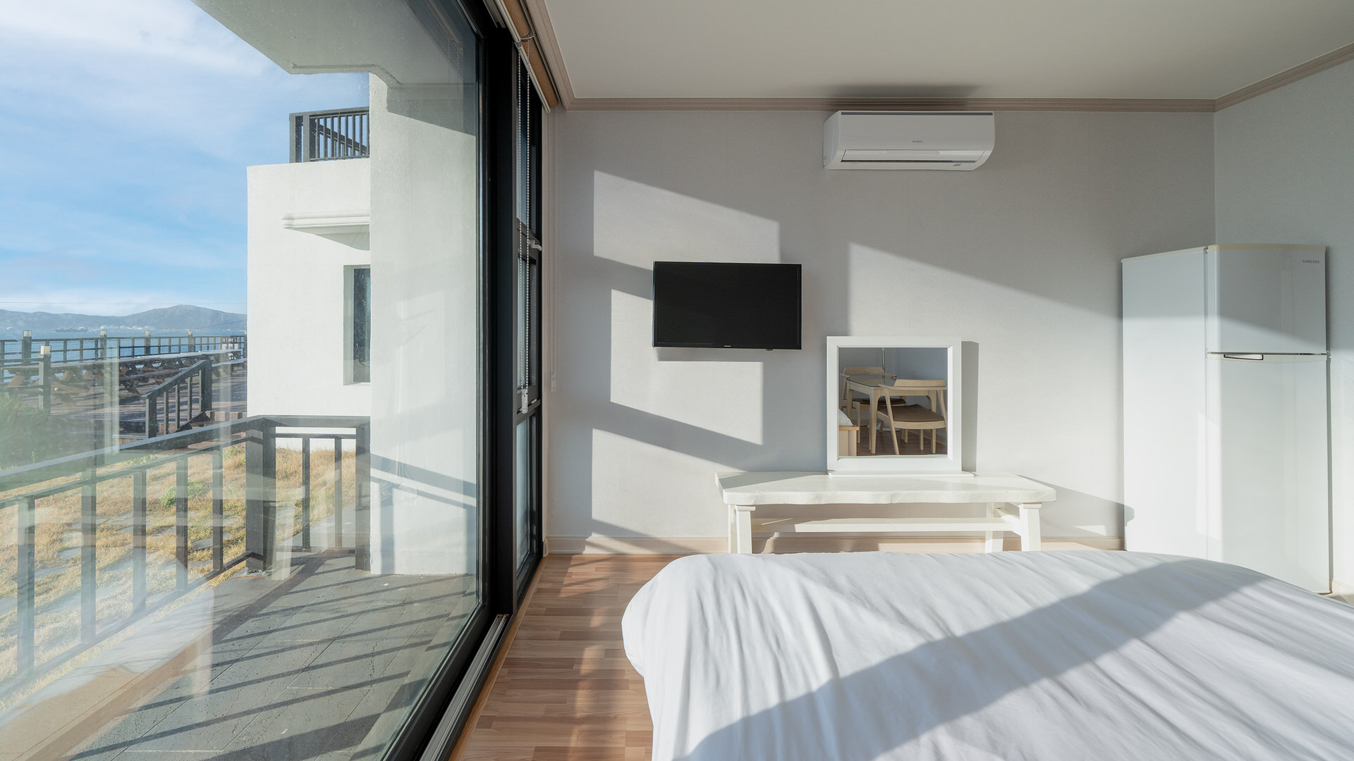 - 집기품목 : TV, 에어컨, 냉장고, 드라이기, 전자레인지, 와이파이, 욕실용품, 커피포트, 전기밥솥, 취사시설/도구, 화재 감지기, 소화기, OTT, 금연, 바다전망